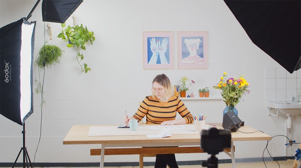 If you are planning to film your work, multiple light fixtures mounted on a tripod is required.
